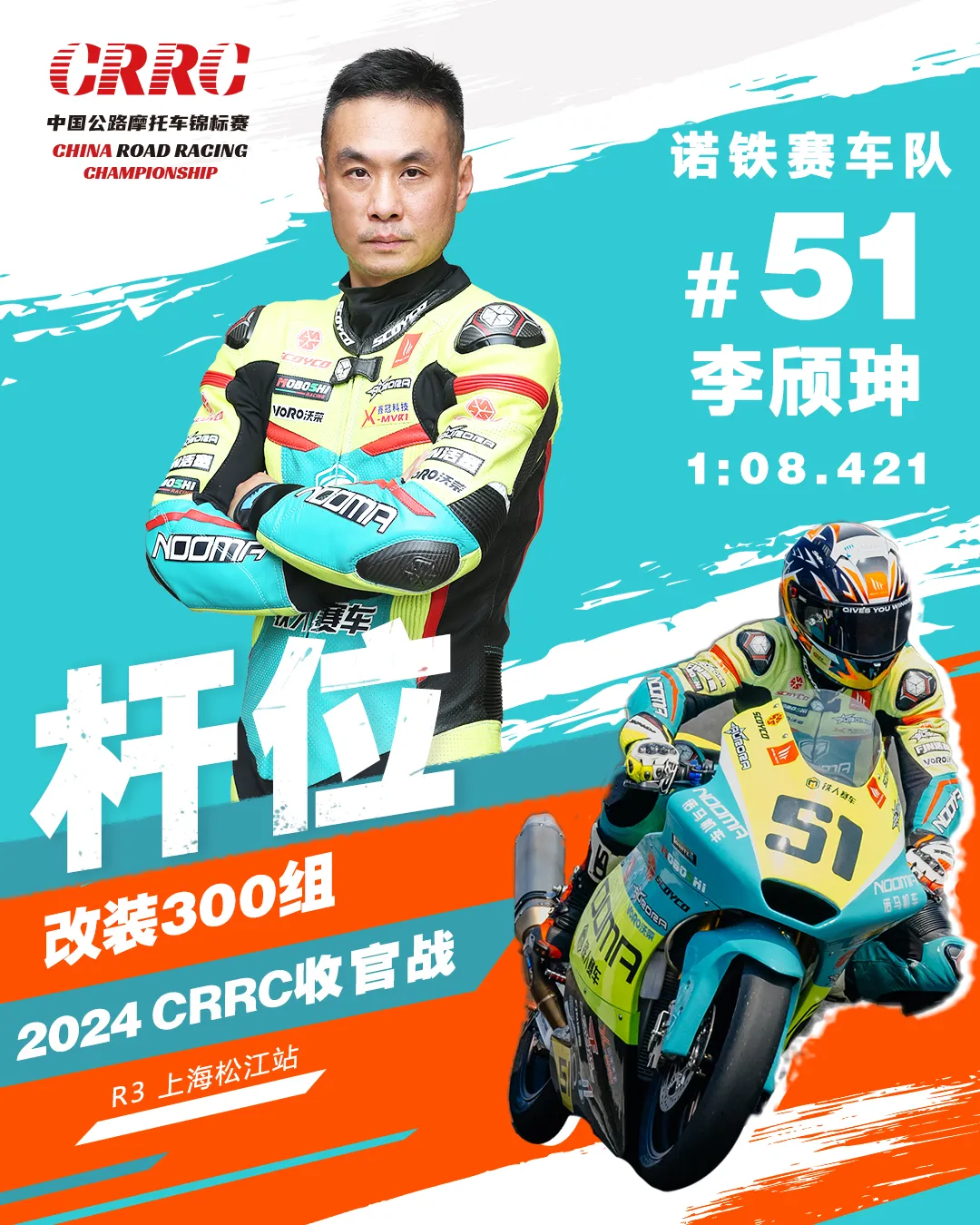 On November 3rd, in the first round of the final, Li Qijun, the 51st driver of the Nooma team, relied on his excellent driving skills and home advantage to maintain a stable 1:08 lap time, successfully winning the championship of the first round and securing key points.