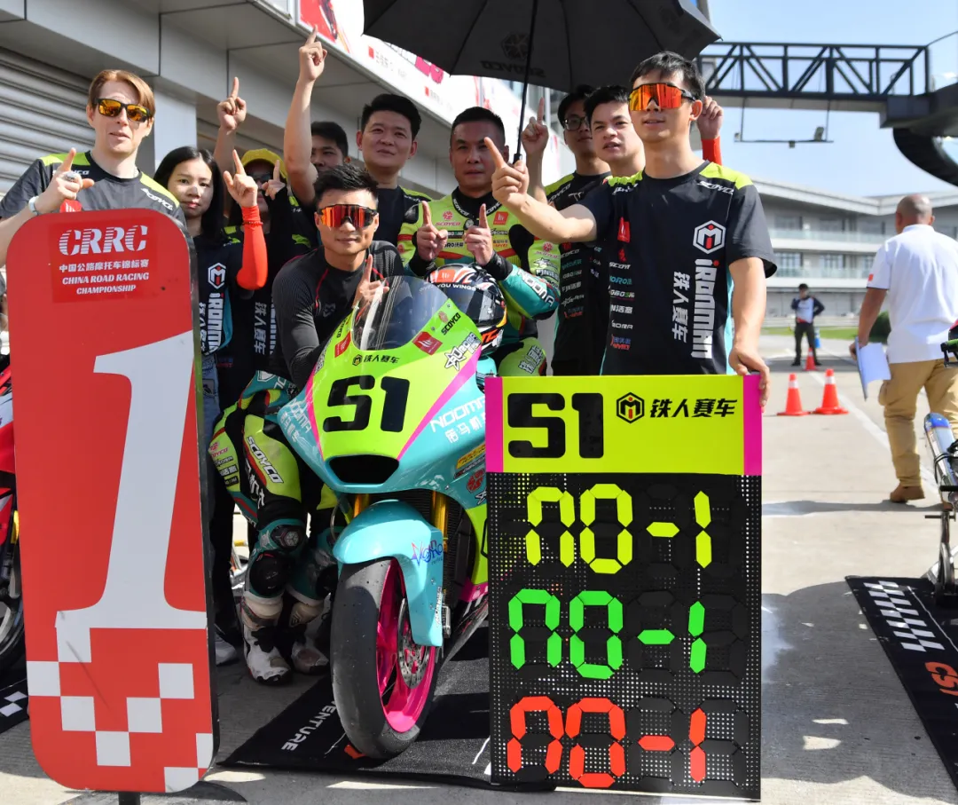 Every curve overtaking and unexpected variable in motorcycle racing is full of suspense and surprises, enough to make every one present boil with passion. The second round of the race was even more thrilling, with the No. 51 starting from pole position slightly later and being overtaken by the second and third teams. In the first six laps of the race, the first group formed by the top four teams engaged in melee combat, alternating positions. Even if there was a slight deviation in the route or a slight decision mistake in offensive and defensive tactics, they would immediately be squeezed into the interior and lost by the opponent. Number 51 finally broke through the encirclement of T8 in the seventh lap, climbed to first place, and immediately easily widened the gap like a fish breaking free from a fishing net, making the championship no longer a mystery. Leading steadily, successfully winning the championship in the second round, with a best lap time of 1:07830, tied with the best result in the 400 group. On the 23rd, Chen Pengji came on the field with an injury, fighting for the team's honor, and the Nooma team secured the team's top spot in total points.